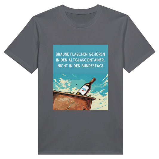 Braune Flaschen gehören in den Altglascontainer - Unisex-T-Shirt aus Bio Baumwolle
